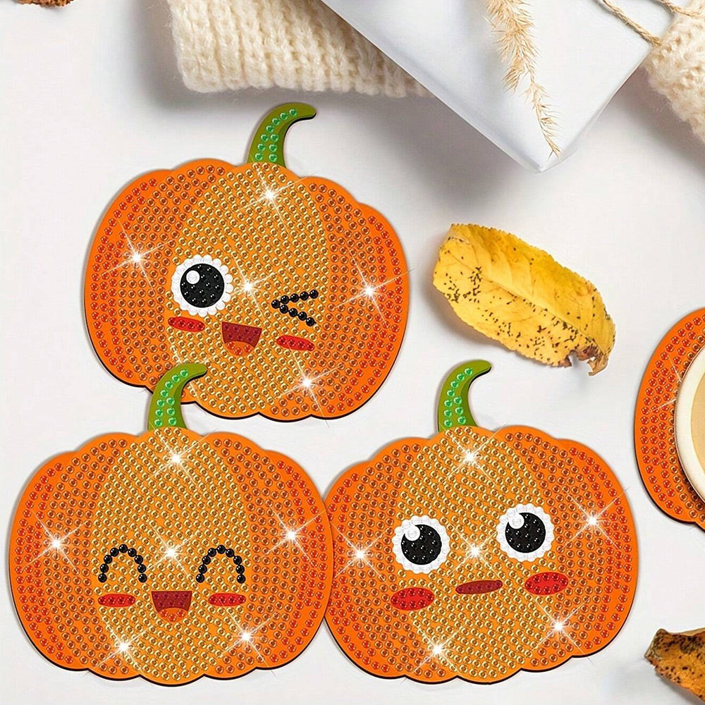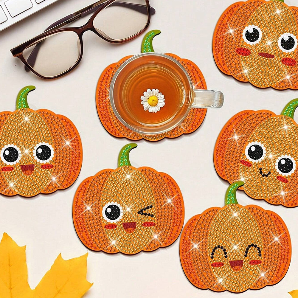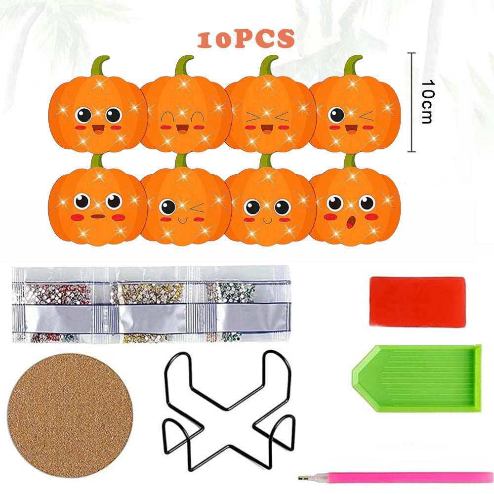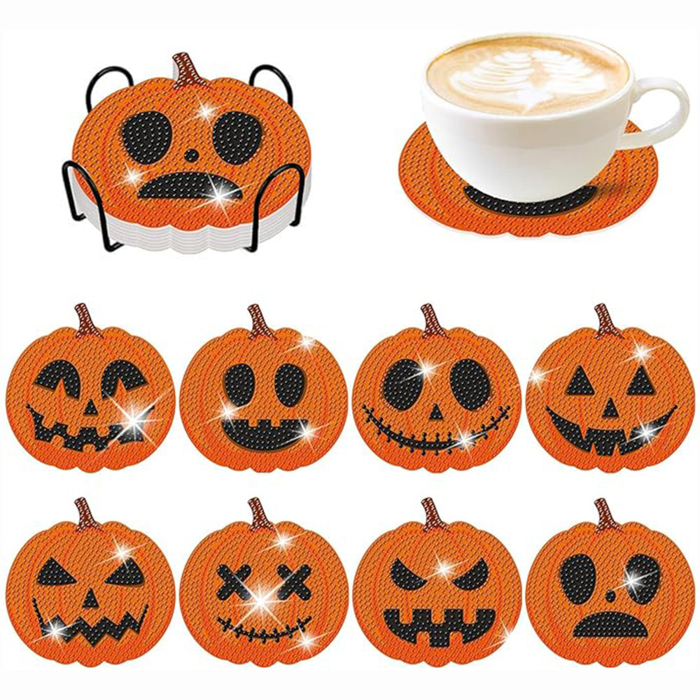 8Stück Kürbislaterne Diamond Painting Untersetzer