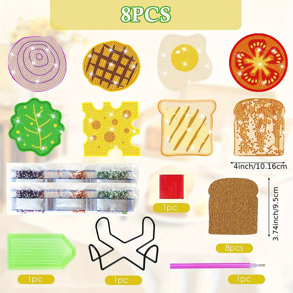 8Stück Leckerer Toast Diamond Painting Untersetzer