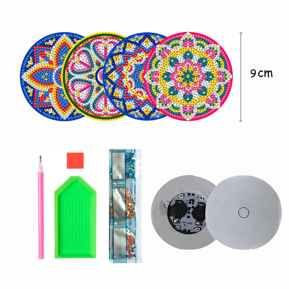 1/4Stück Mandala (mit Licht) Diamond Painting Untersetzer