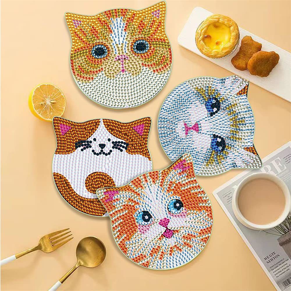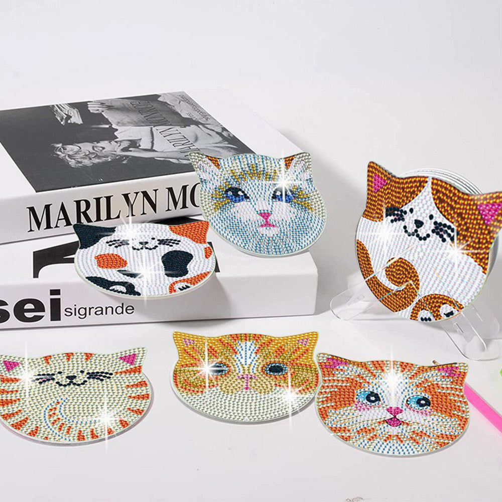 Niedliche Katze Diamond Painting Untersetzer 6Pcs