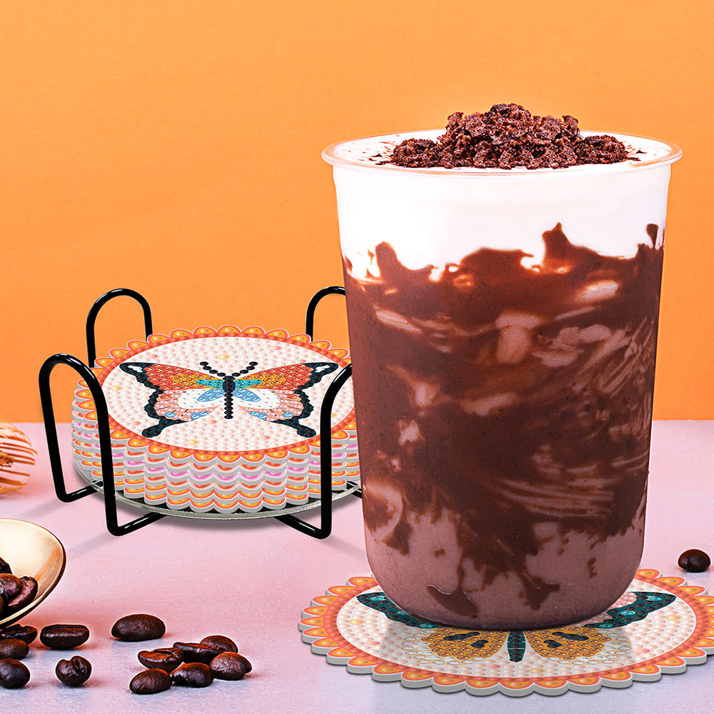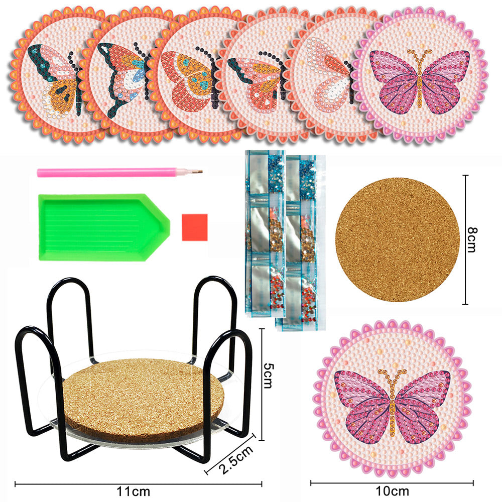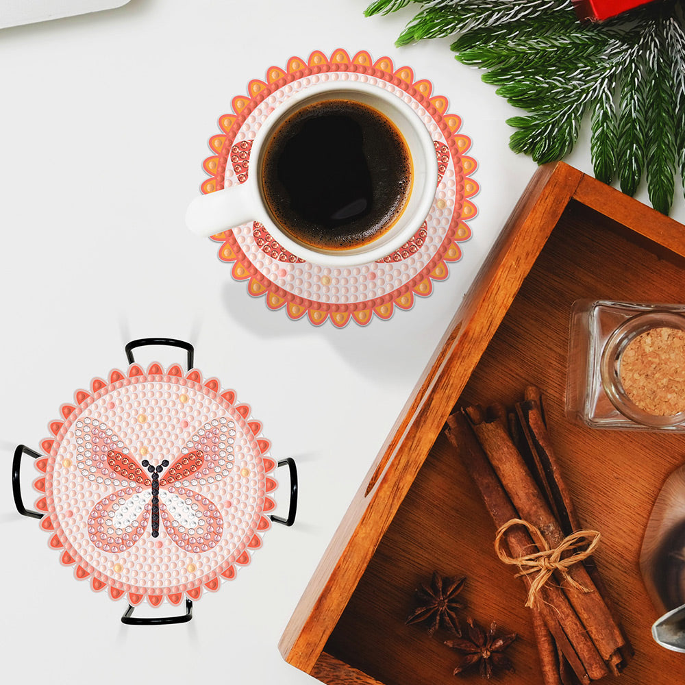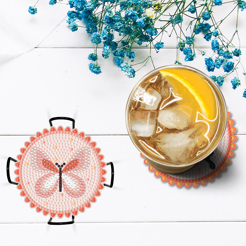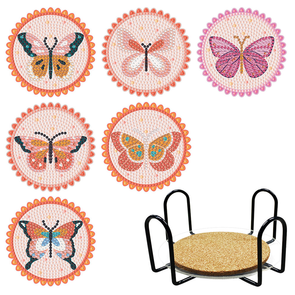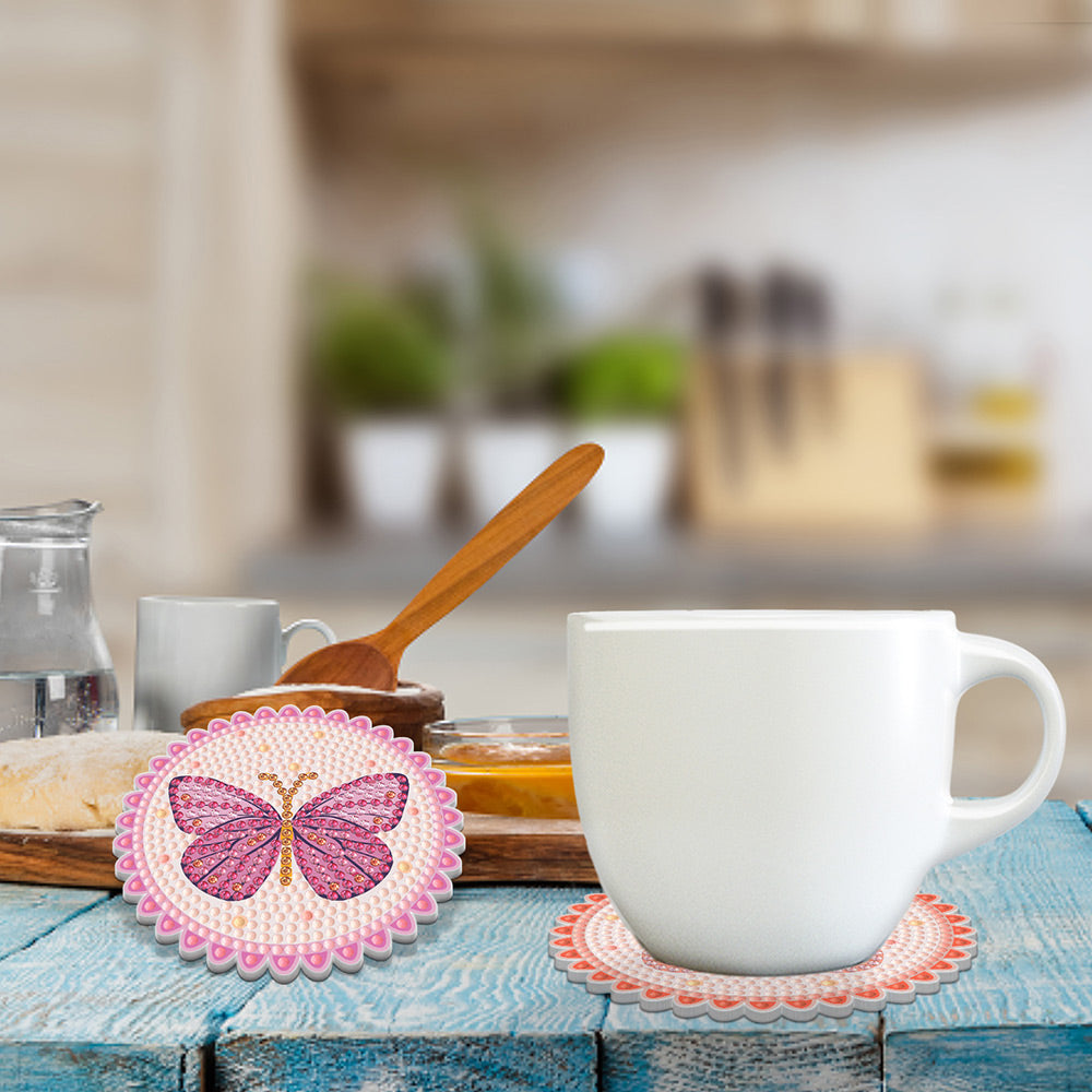 Rosa Schmetterling Diamond Painting Untersetzer 6Pcs