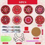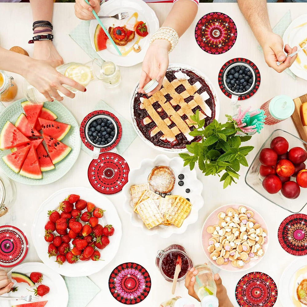 8Stück Rotes Mandala Diamond Painting Untersetzer