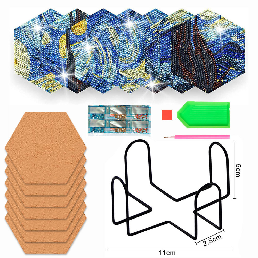 7Stück Sechseck Sternenhimmel Diamond Painting Untersetzer