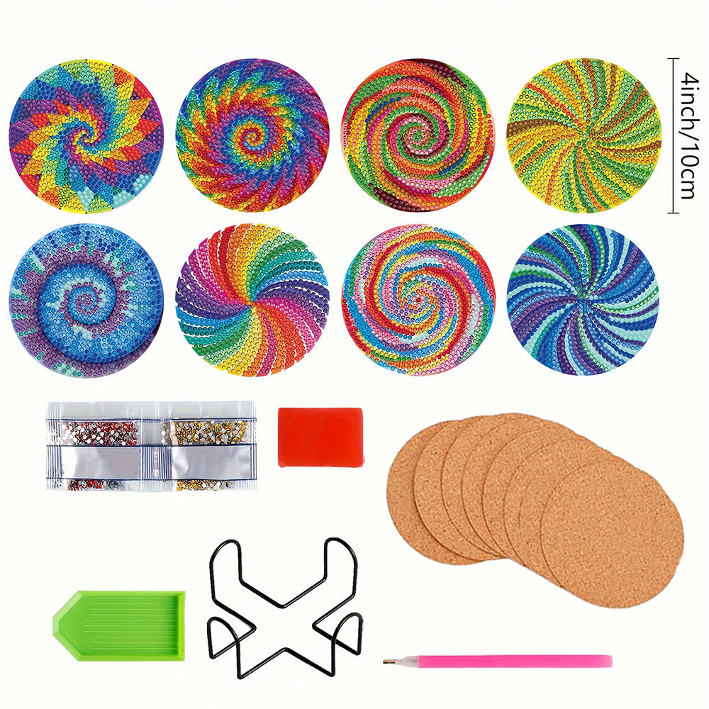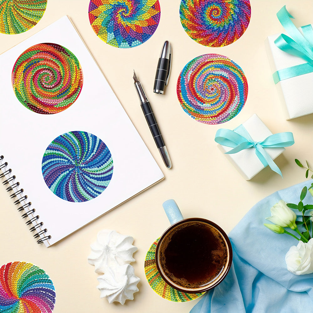 8Stück Spirale Psychedelische Bunte Linien Diamond Painting Untersetzer