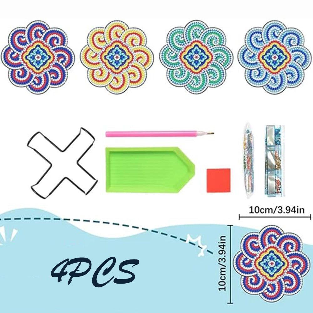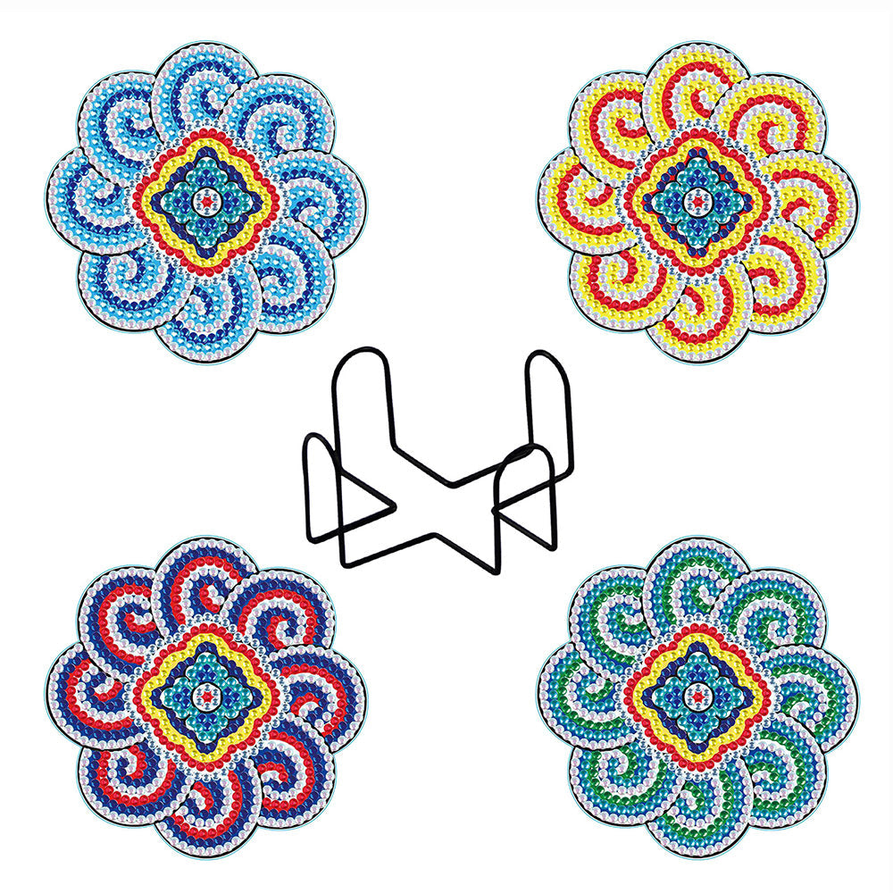 4Stück Spiralförmige Linie Mandala Diamond Painting Untersetzer