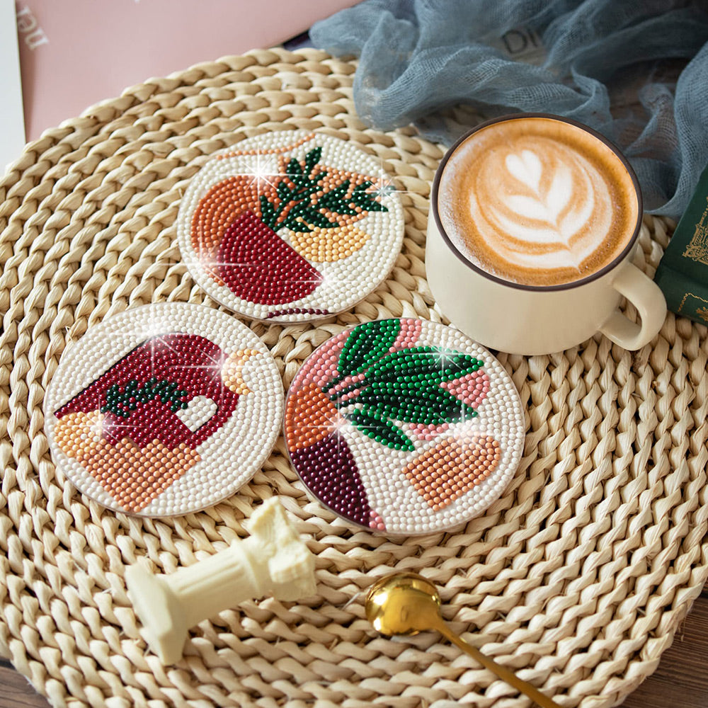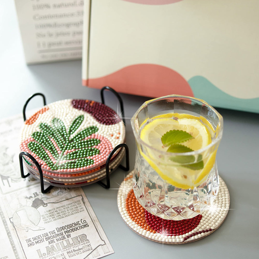 6Stück Tropische Pflanzenblätter Diamond Painting Untersetzer