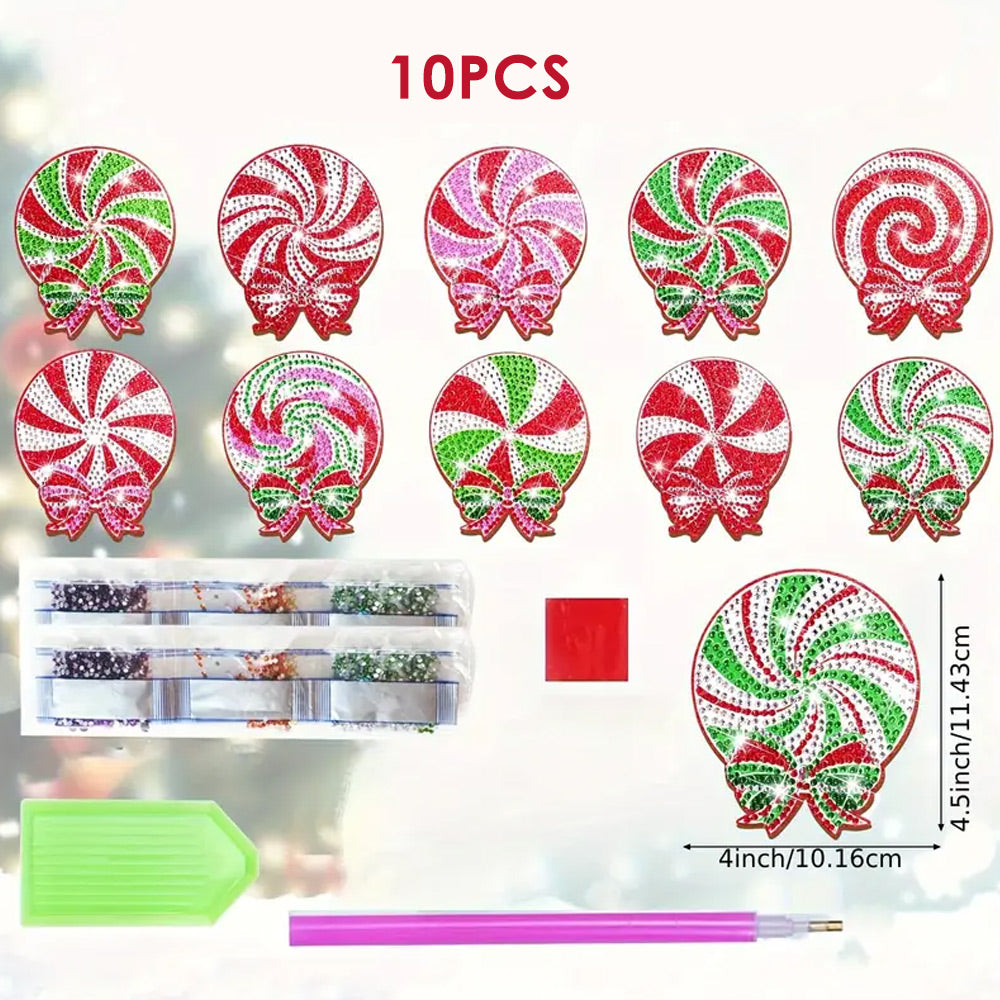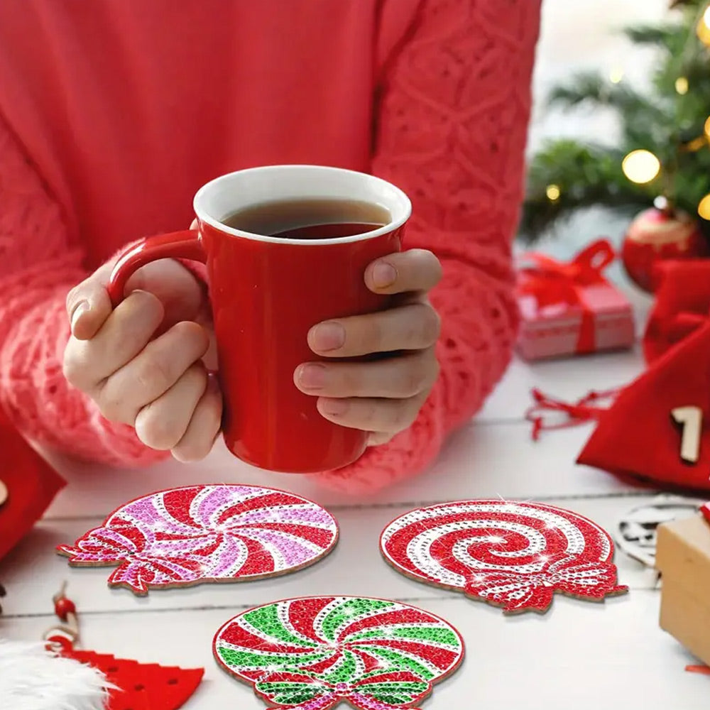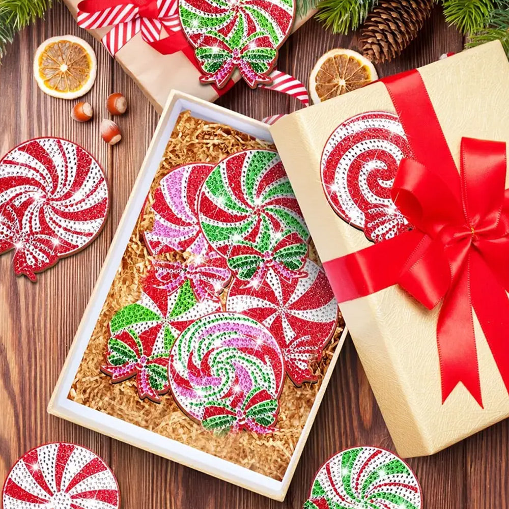 8/10Stück Weihnachten Lollipop Diamond Painting Untersetzer