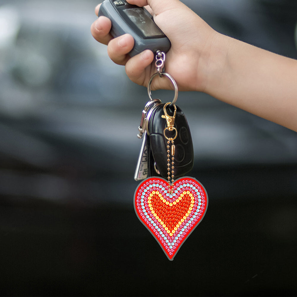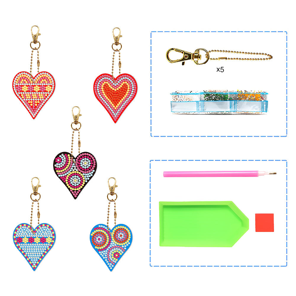 5Stück Schönes Herz Acryl Doppelseitiger Schlüsselanhänger Diamond Painting