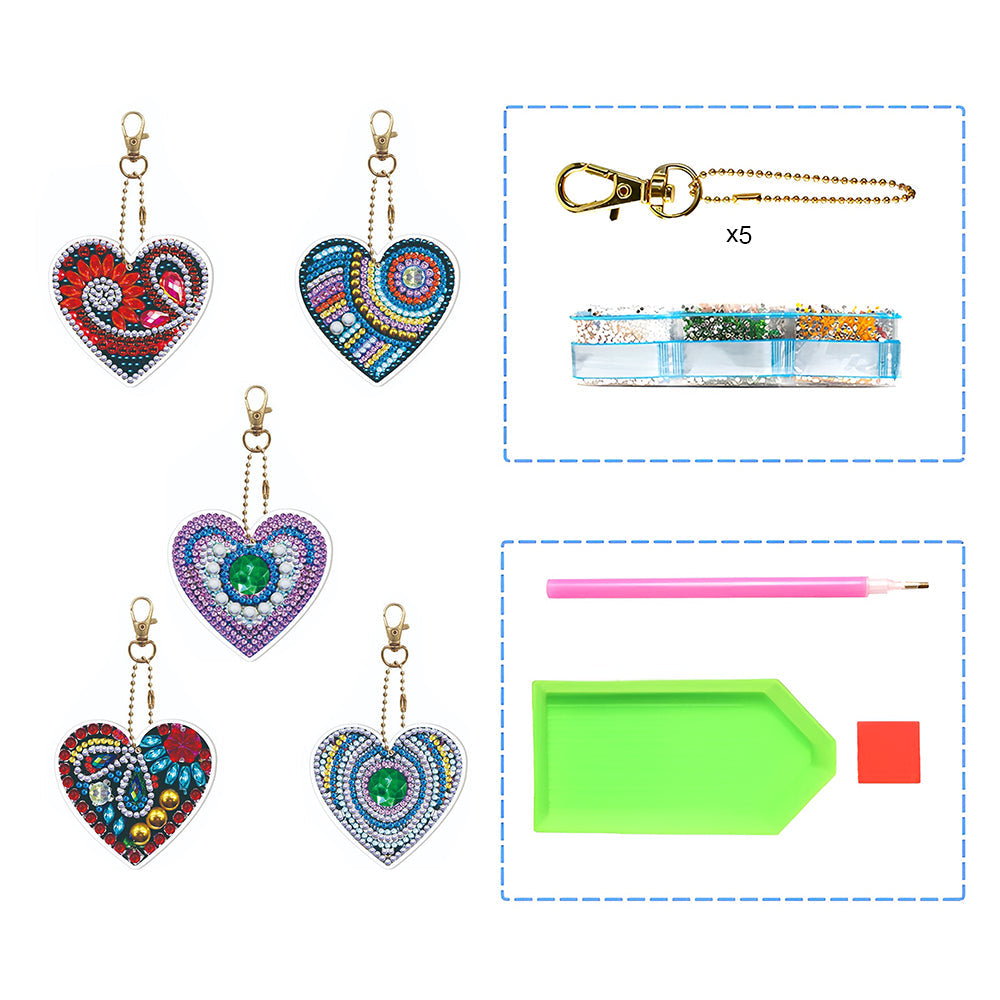 5Stück Ewiges Herz Acryl Doppelseitiger Schlüsselanhänger Diamond Painting
