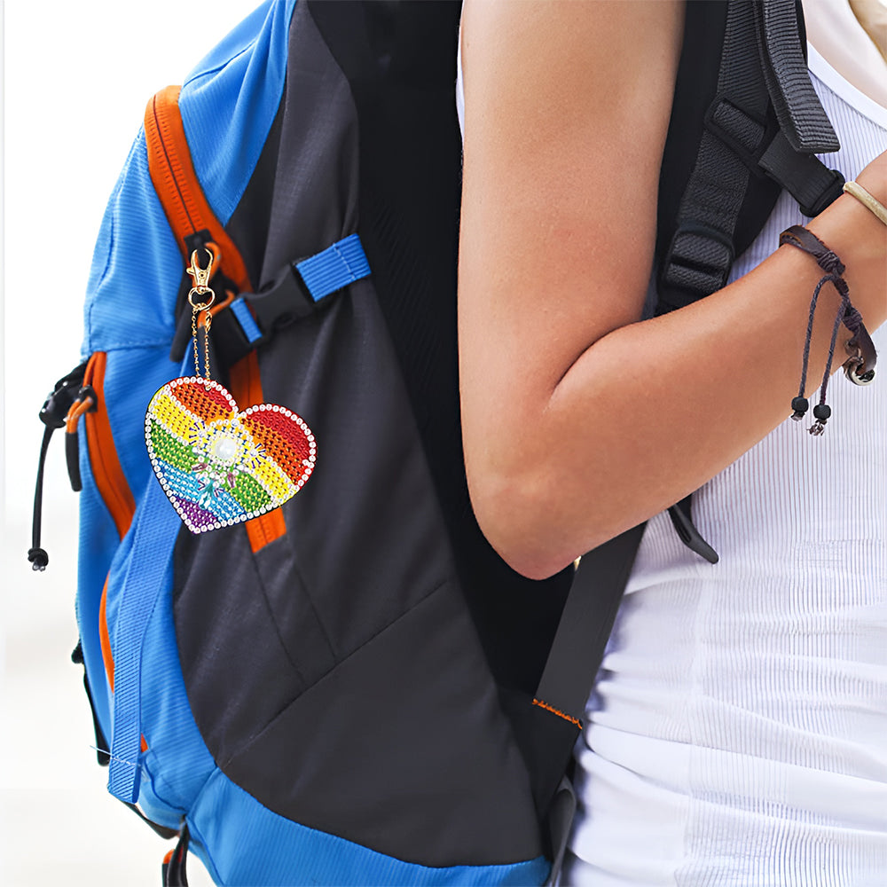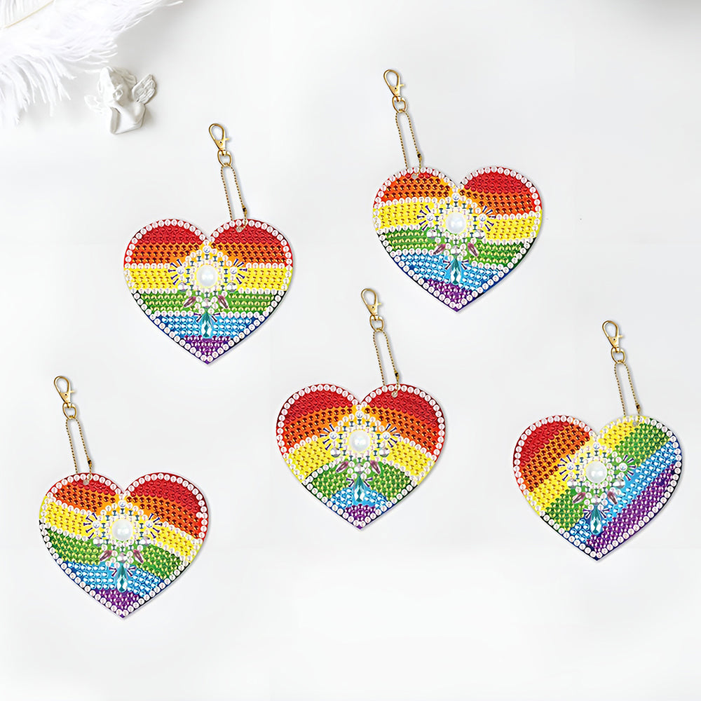 5Stück Regenbogen Herz Acryl Doppelseitiger Schlüsselanhänger Diamond Painting