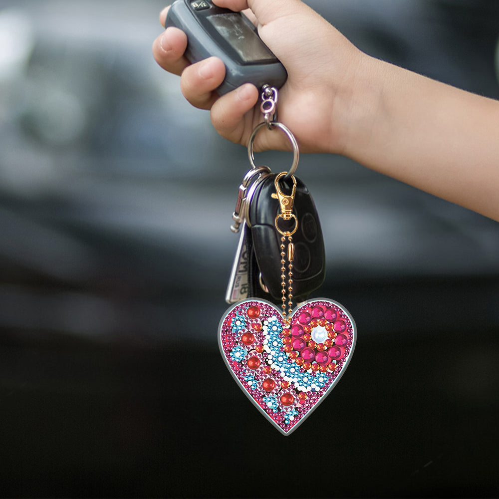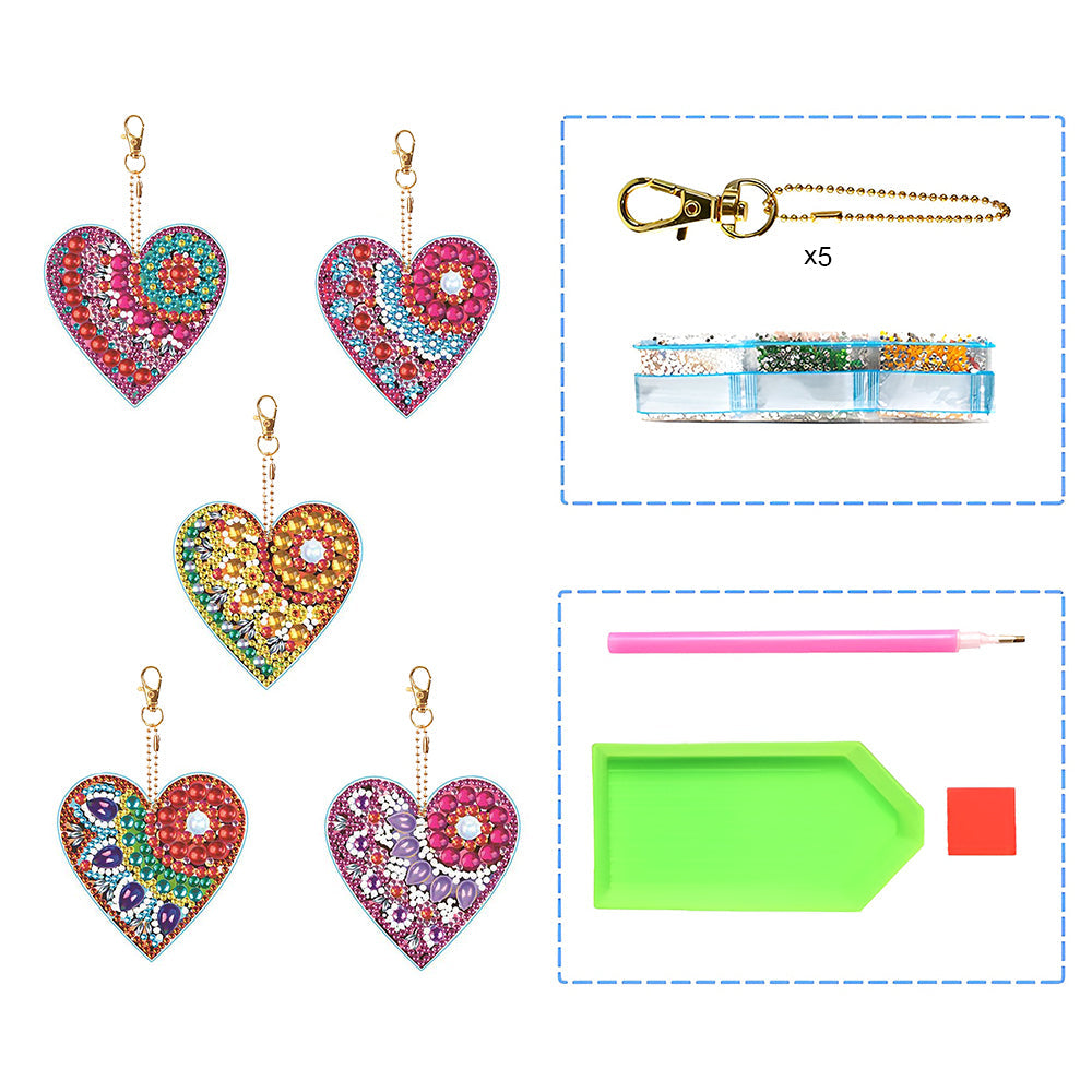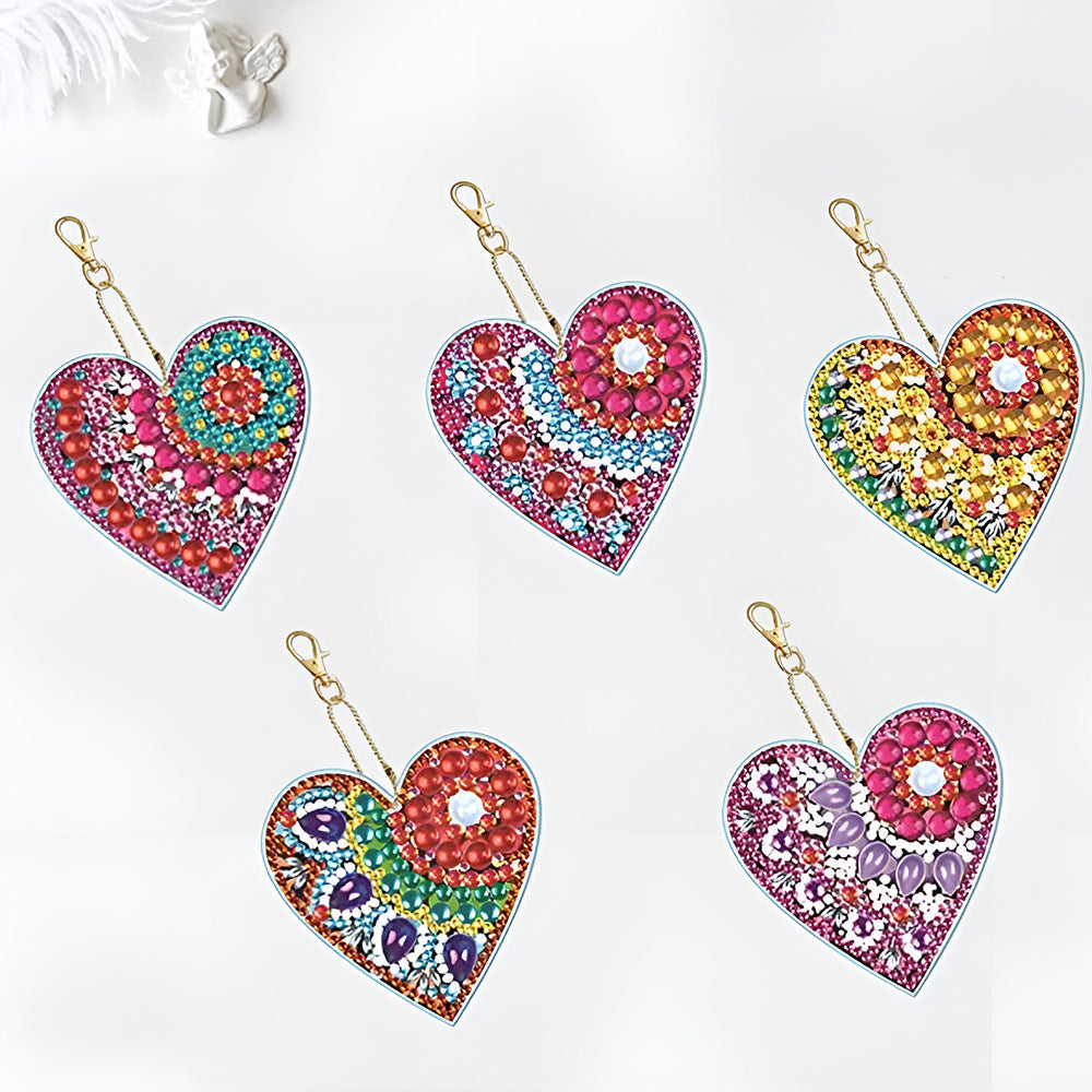 5Stück Shönes Herz Acryl Doppelseitiger Schlüsselanhänger Diamond Painting